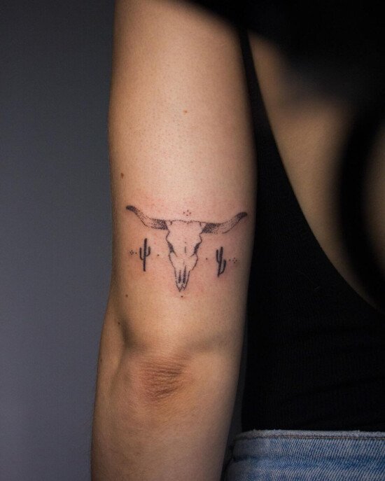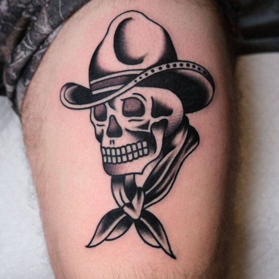 Skulls and Skeletons: Bull skulls and skeletons are common in western tattoos, symbolizing death, change, and the harsh realities of life in the West. They can also represent respect for the animals and the rugged lifestyle of the past.