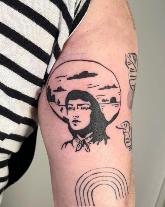 Western Icons and Legends: Famous figures from Western history, like outlaws, sheriffs, and pioneers, or even fictional characters from Western movies and novels, can serve as inspiration for tattoos, symbolizing bravery, adventure, and the complex history of the West.